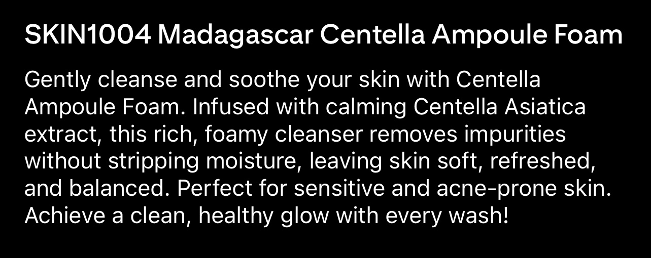 Gently cleanse and soothe your skin with Centella Ampoule Foam. Infused with calming Centella Asiatica extract, this rich, foamy cleanser removes impurities without stripping moisture, leaving skin soft, refreshed, and balanced. Perfect for sensitive and acne-prone skin.